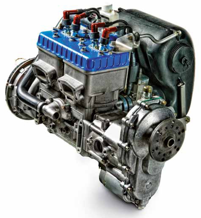 • Twin-cylinder, two-stroke, liquid-cooled aircraft engine with rotary valve intake and dual electronic ignition.